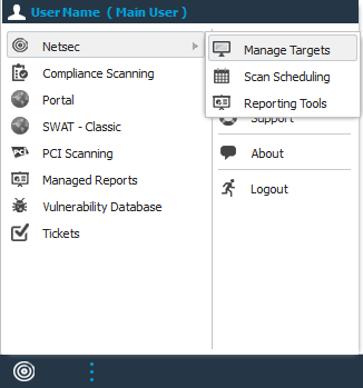 Navigate to Netsec > Manage Targets in the Main Menu.