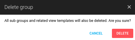 Built-in view templates cannot be deleted. This contextual menu entry is only displayed for user defined view templates. All sub groups and related view templates will also be deleted.