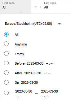 Anytime | Everything with a timestamp. (Empty fields excluded) |