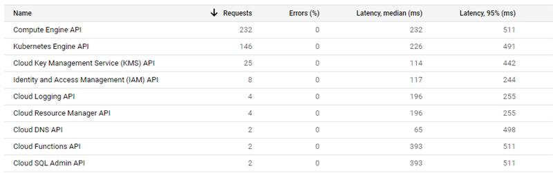 You can double check GCP enabled APIs at the bottom of the "APIs & Services" Dashboard.