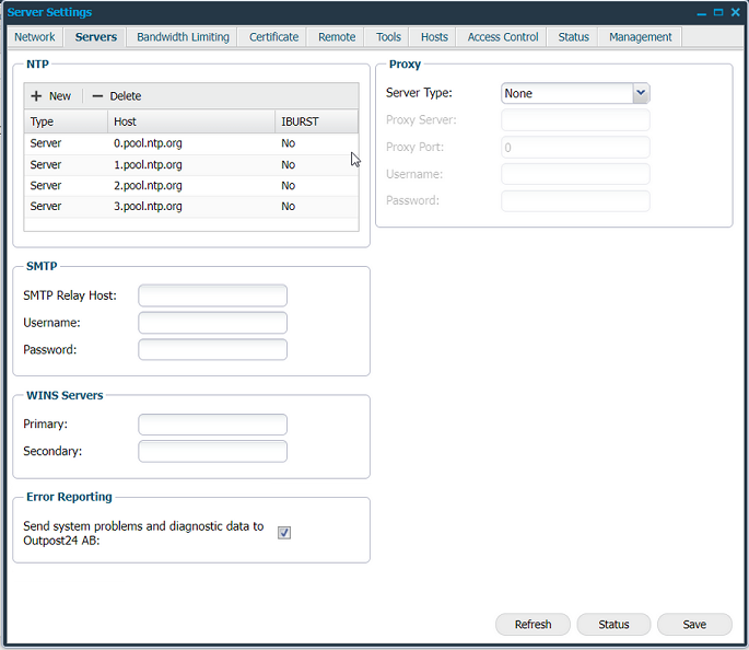 Navigate to Main Menu > Settings > Server > Servers tab.