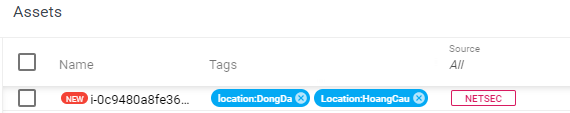 A new tag Location:HoangCau was created and linked to Asset. We have 3 externalKeys: department, dev, Location, but there is only Location key is matched with AWS tags