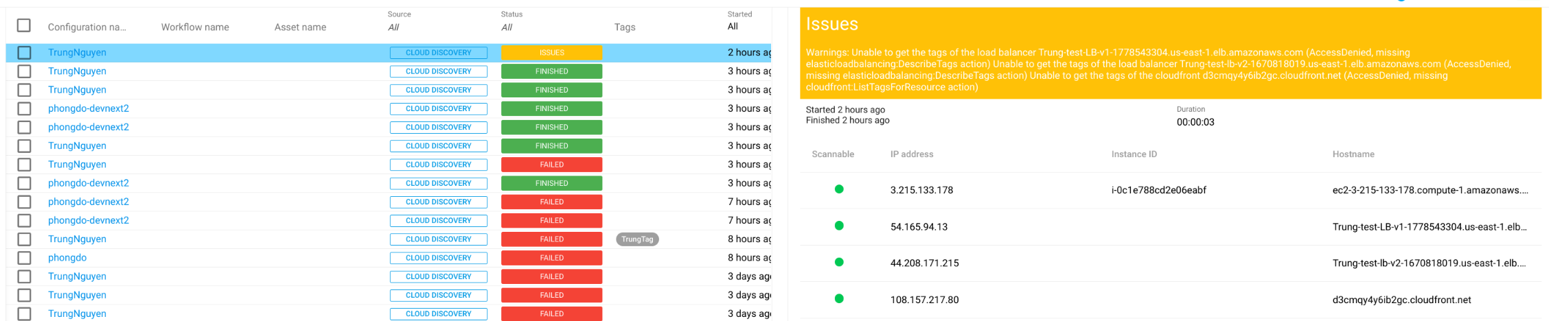 If users do not have tag permission, then no AWS tags are imported and a warning message is displayed in the scan result.