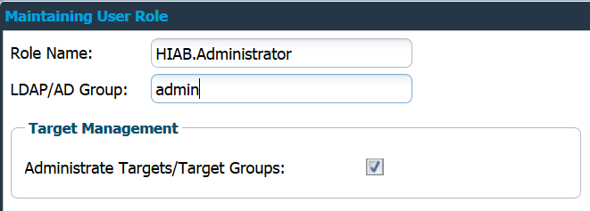 In the above example, HIAB.Administrator is automatically assigned to users that belong to the group admin in the LDAP/AD tree.