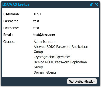 Click on Test Authentication to verify the user's authentication.