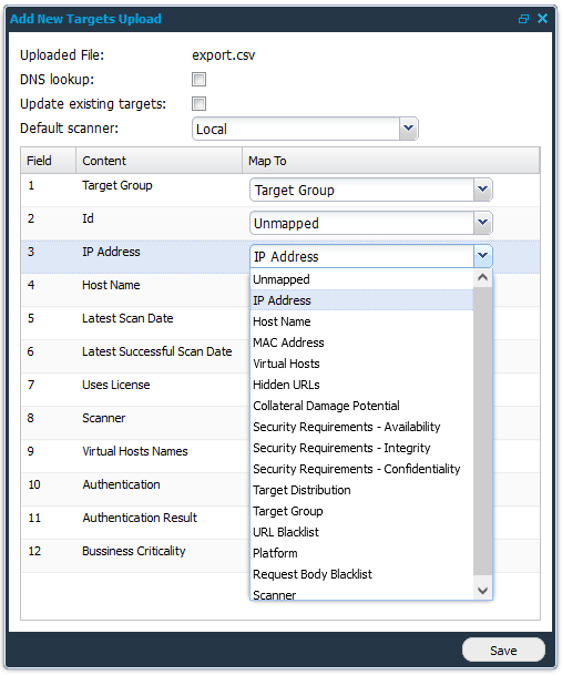 Add details on targets | Add custom fields on the targets and populate them with adequate information. Chose information that will be useful to have access to when reading the report or managing the targets and/or risks. For example: System Owner, Datacenter, Rack slot, Geographical location or likewise. | |||