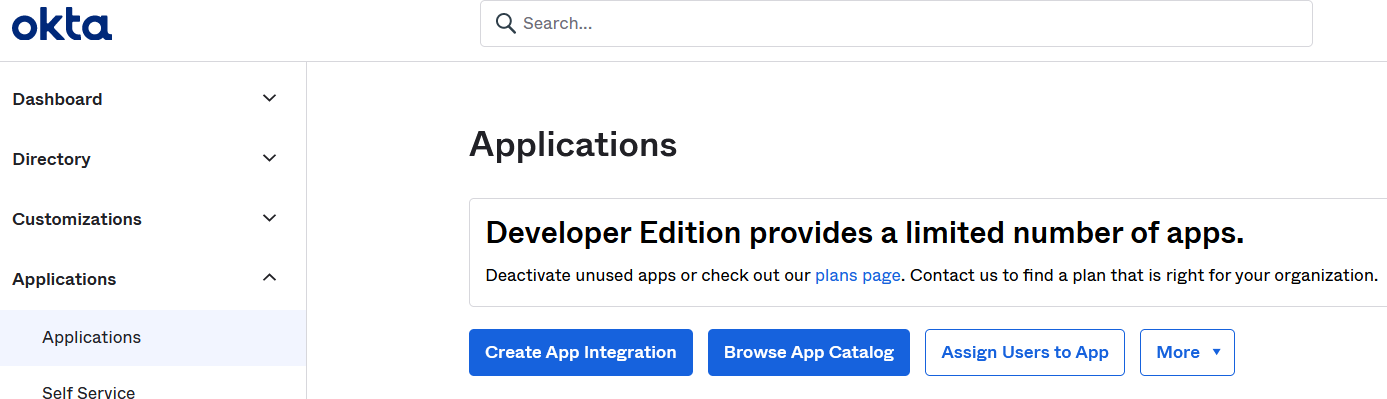 Login to Okta portal with administrative privileges and then navigate to Applications/Applications in the left menu as shown below: