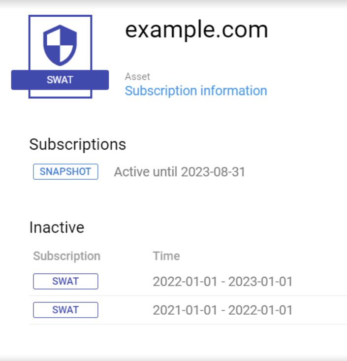 New tab in Asset details with subscription information: