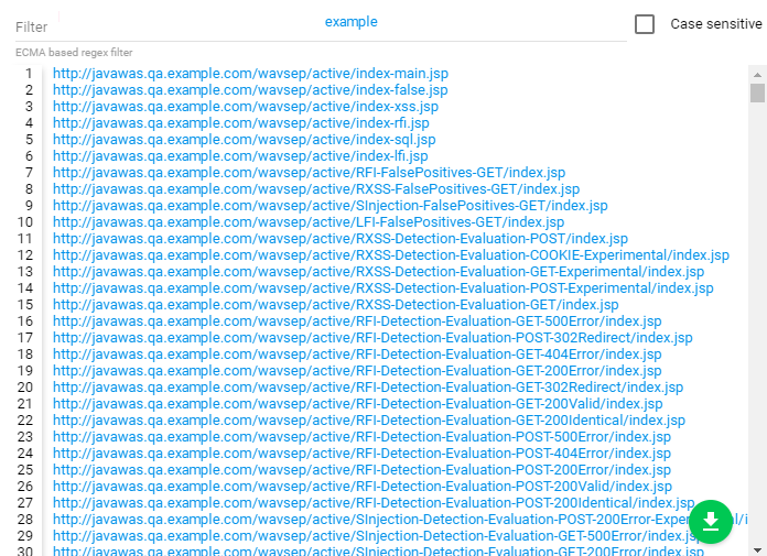 The complete URL list can be downloaded to a file by clicking the green Download URLs