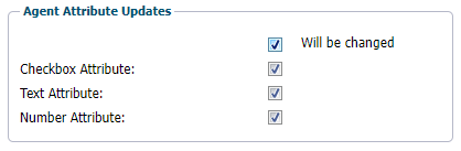 In case both Will be changed and Update Attributes are checked but NO attribute in Agent Attribute Updates is selected, Will be changed will be ignored and only the attributes in Update Attributes applied.