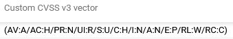 CVSS v3 vector | ![]() | The CVSS v3 vector is a text-based representation that encodes key details about a security vulnerability. It includes fields for Base metrics, Temporal metrics , and Environmental metrics. These metrics describe attributes like how the vulnerability can be accessed, its exploitability, the availability of fixes, and more. The CVSS v3 vector is used to calculate the CVSS scores |